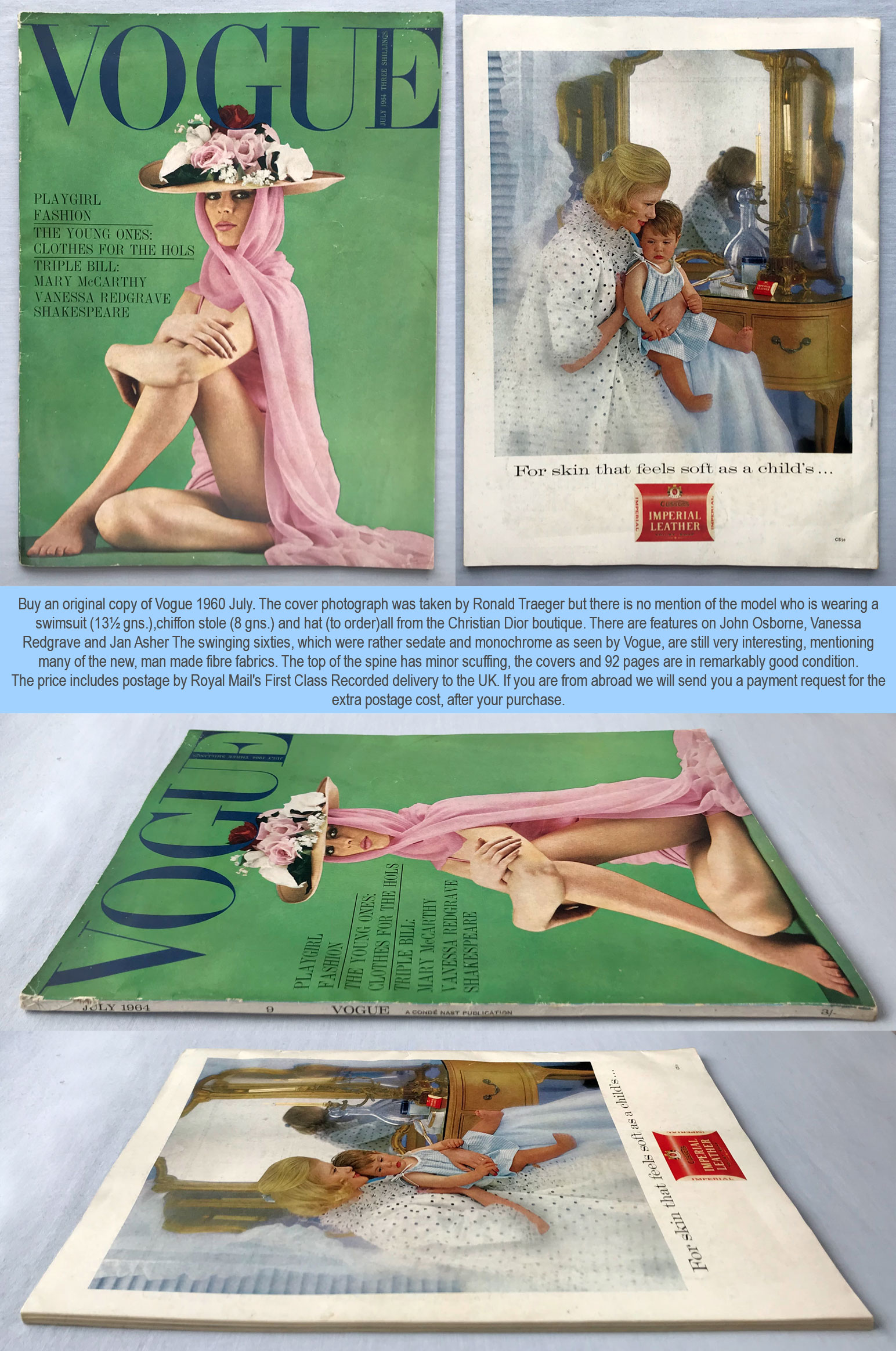 ![]() Buy 1960s Vogue magazine back issues Buy British UK Vogue original back issues from the 1960s. Click on the photos to see larger images. Vogue issues from the 1960's - in various conditions as shown on the link photos. Click on the photos to see larger images and click on those to see them full size. |